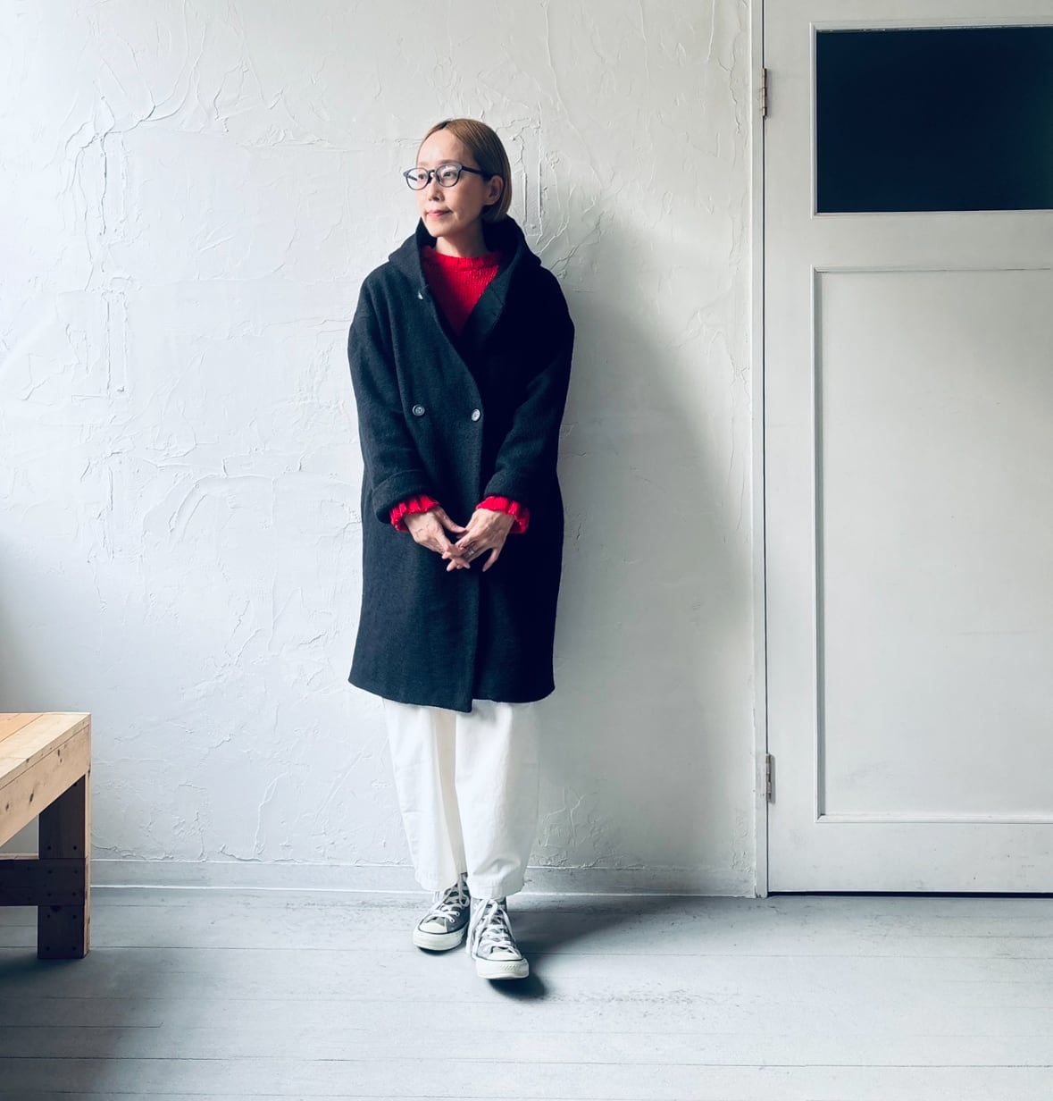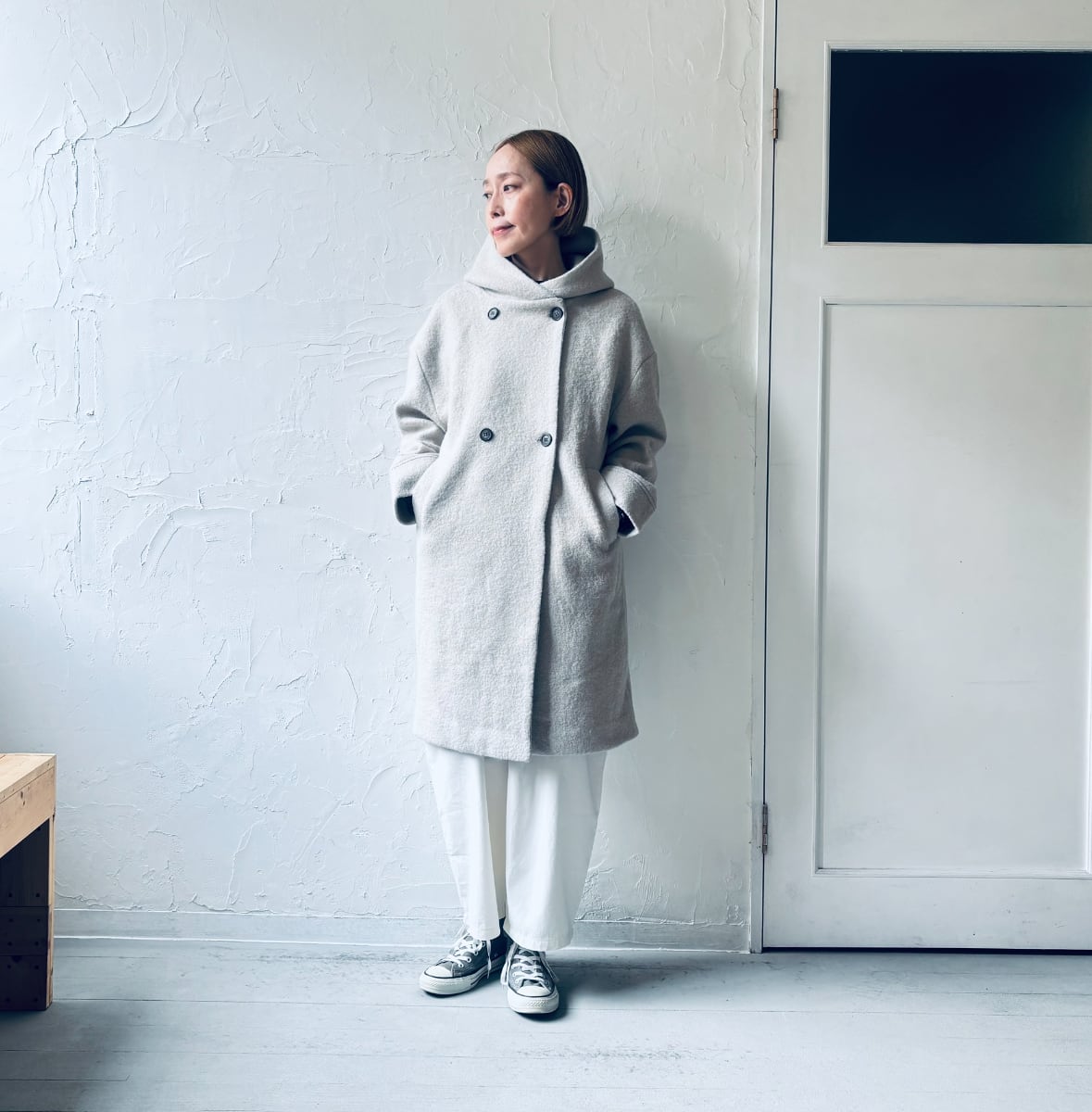 new❗️item637 :プレスウールフードロングPコート