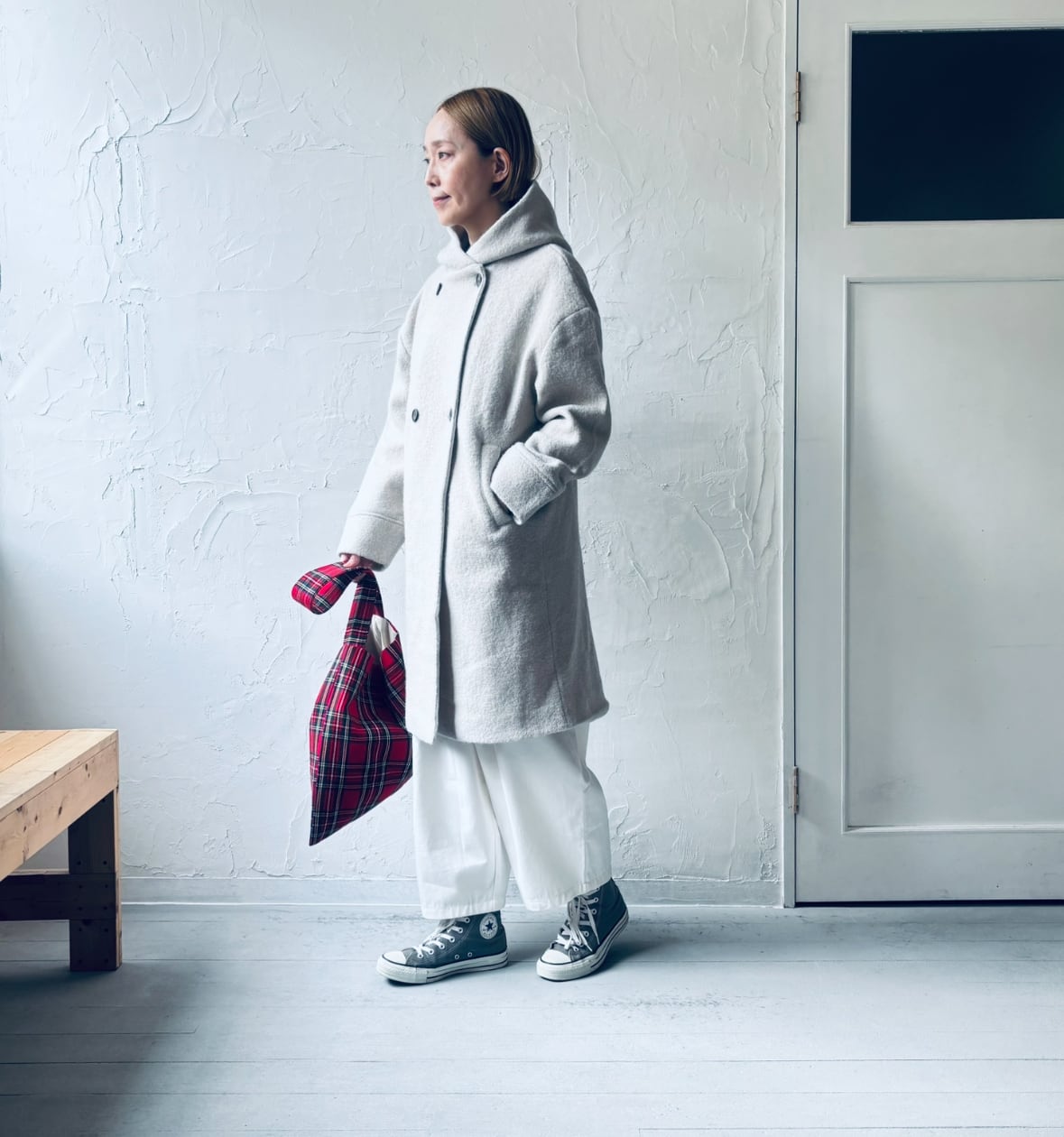 圧縮woolのフードロングコート✨