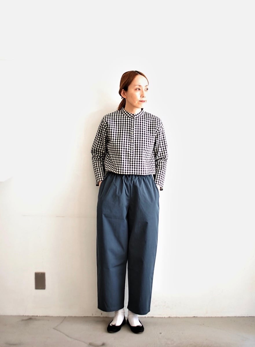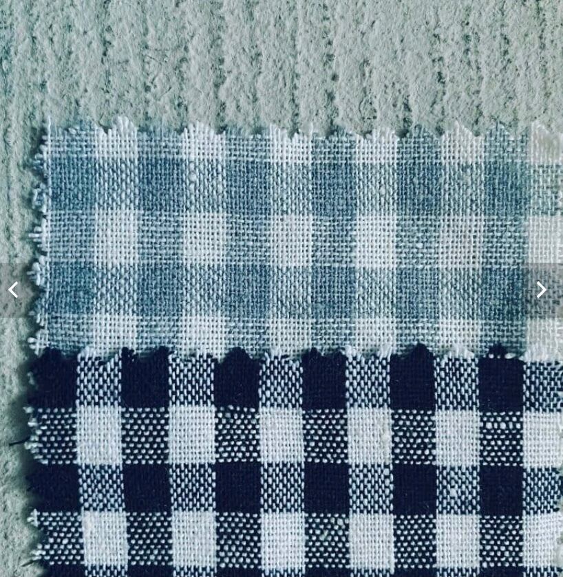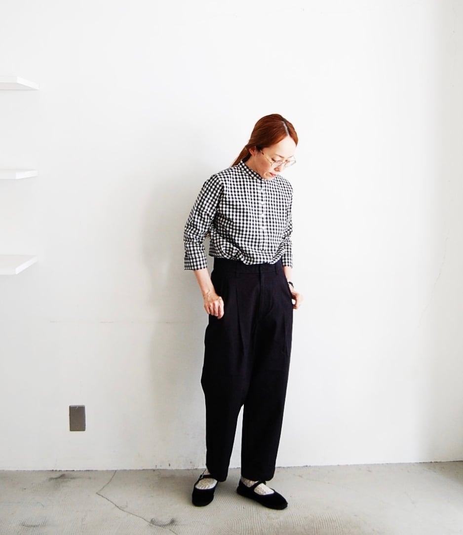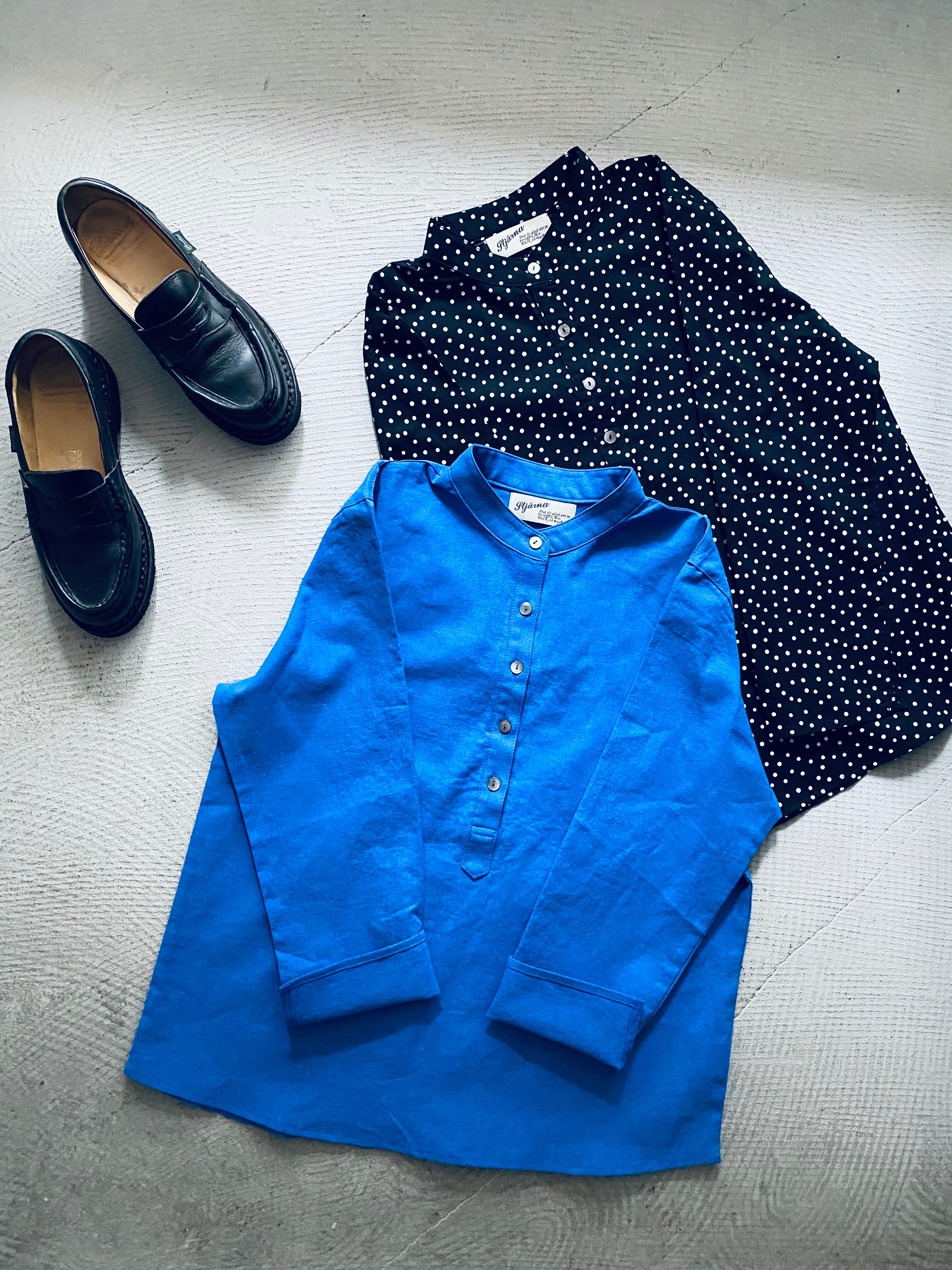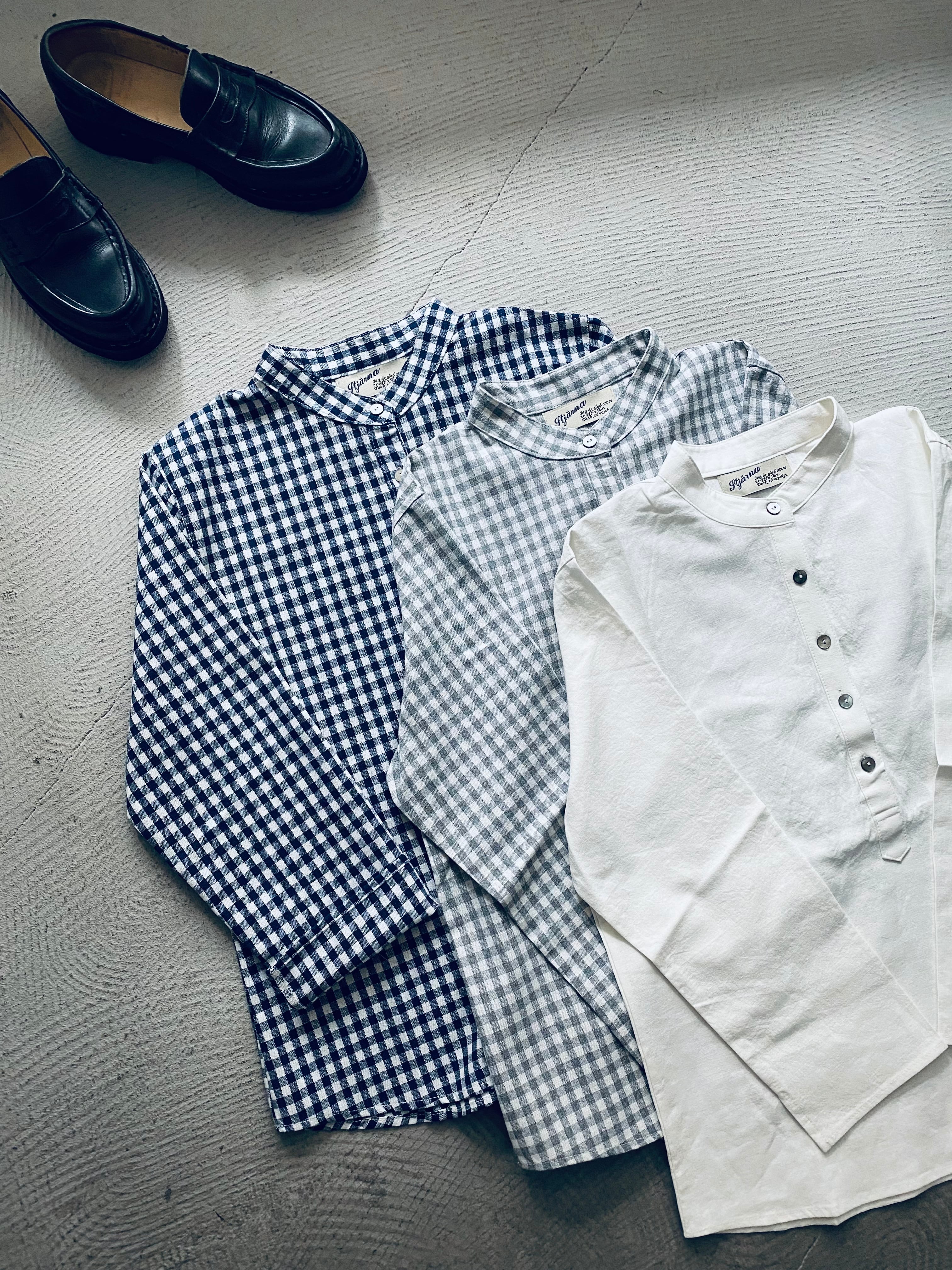 オリジナルヘンリーネックシャツに、ギンガムバージョンと無地オフ白(コットンリネン)