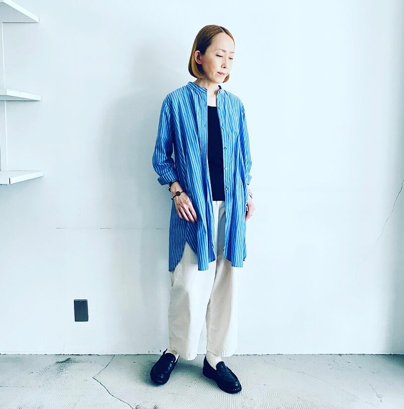 new❗️item 204:オリジナルバンドカラースリットロングシャツ