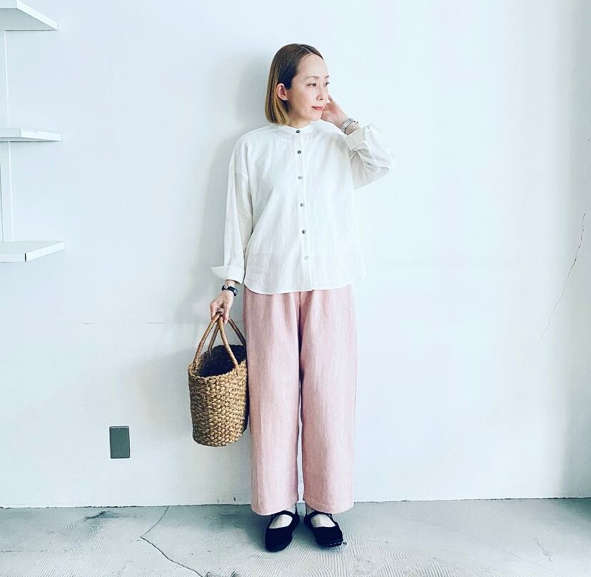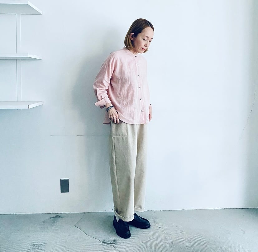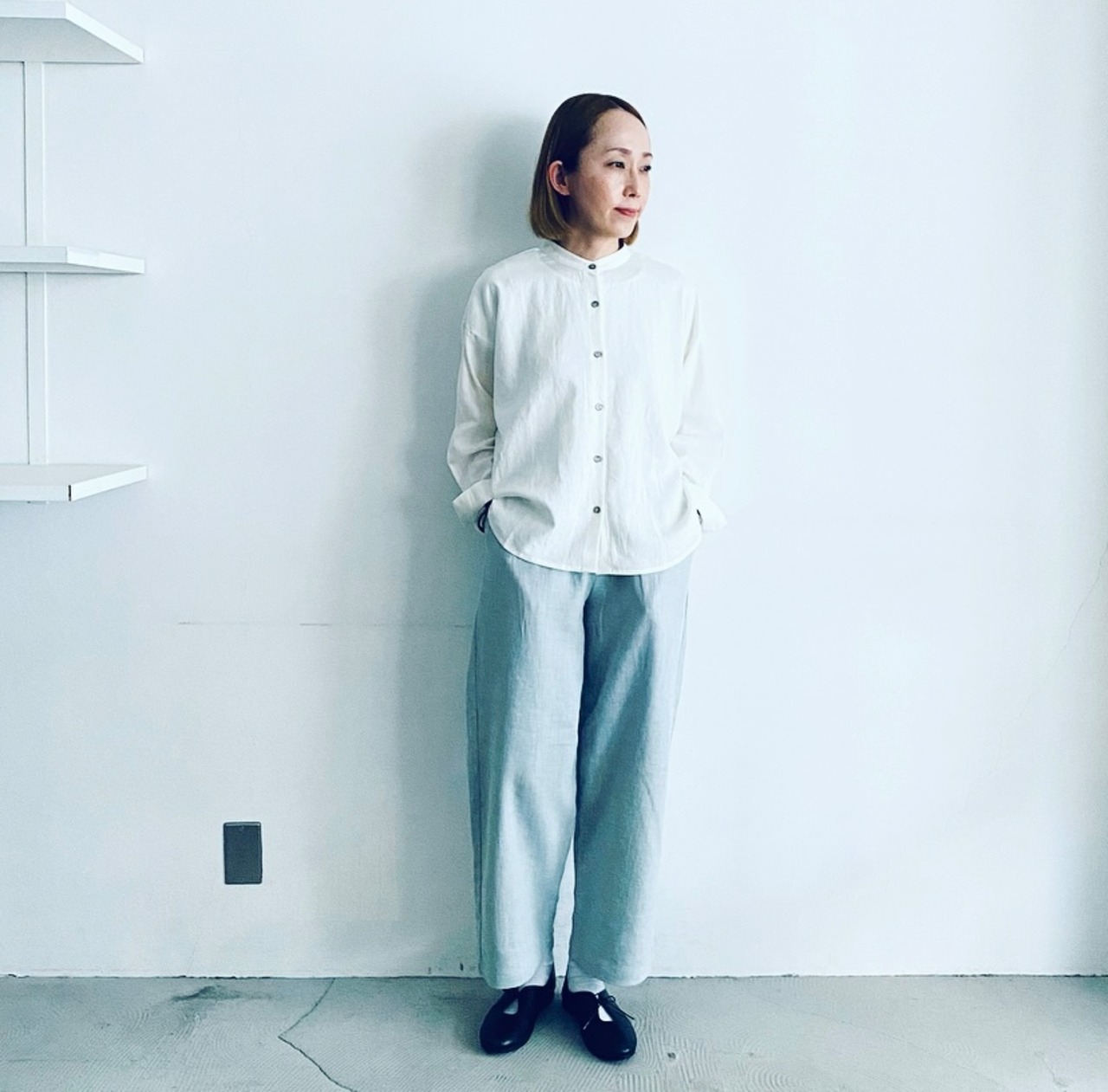 再入荷❗️item039F:オリジナルノーカラー肩下がりブラウス(ソフトリネンバージョン)
