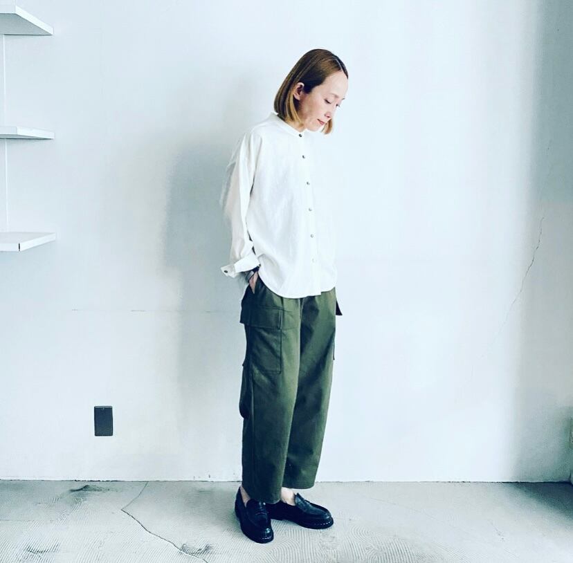 後ろ下がりシルエットを生かしてカッコよく着たり。