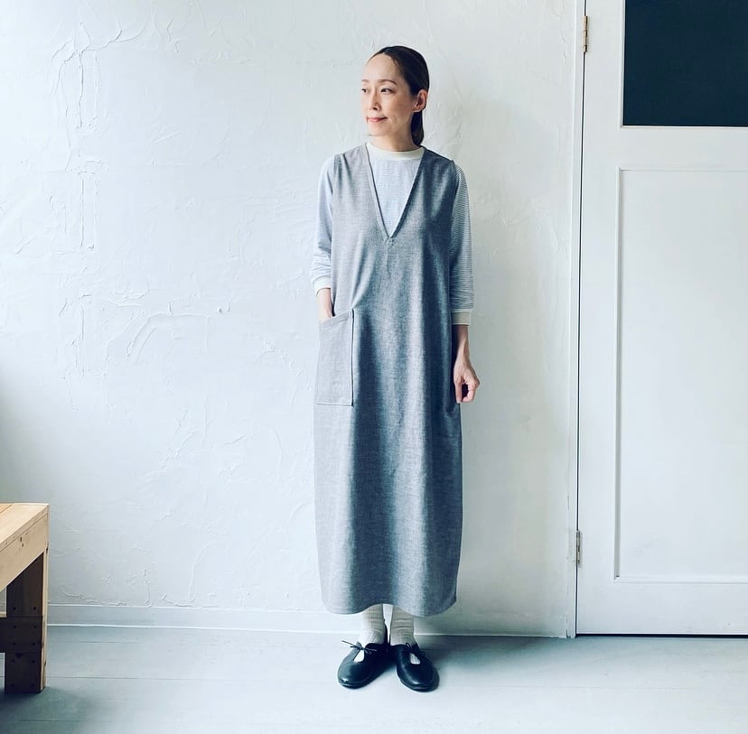 ご予約受付中❗️item513:オリジナルポケットVネックジャンパースカート(つや消しサテンストレッチバージョン)